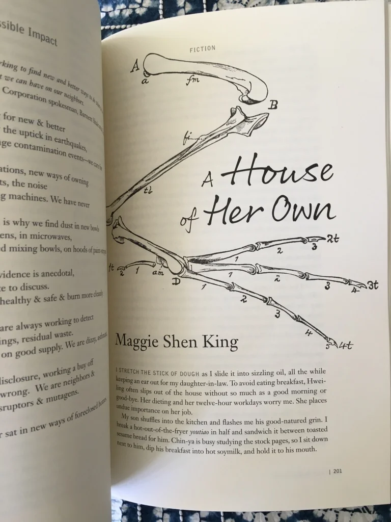 "One of my favorite pieces in this issue is “A House of Her Own” by Maggie Shen King. This story details the struggle of a mother to find her place as her children are now grown and don’t really need her anymore. The next generation is seeking their own form of freedom, and she starts to realize that she has imposed, intentional or not, a weight on her family that she never intended to give them. Once she has finally come to realize this, she makes a big decision—to seek out “A haven where I am neither the paragon of familial virtue, its enforcer, nor its watchdog.” Throughout the story, the author provides such vivid details of city life, effortlessly introducing the reader to a rich culture even as she tells this bittersweet story of self-discovery."